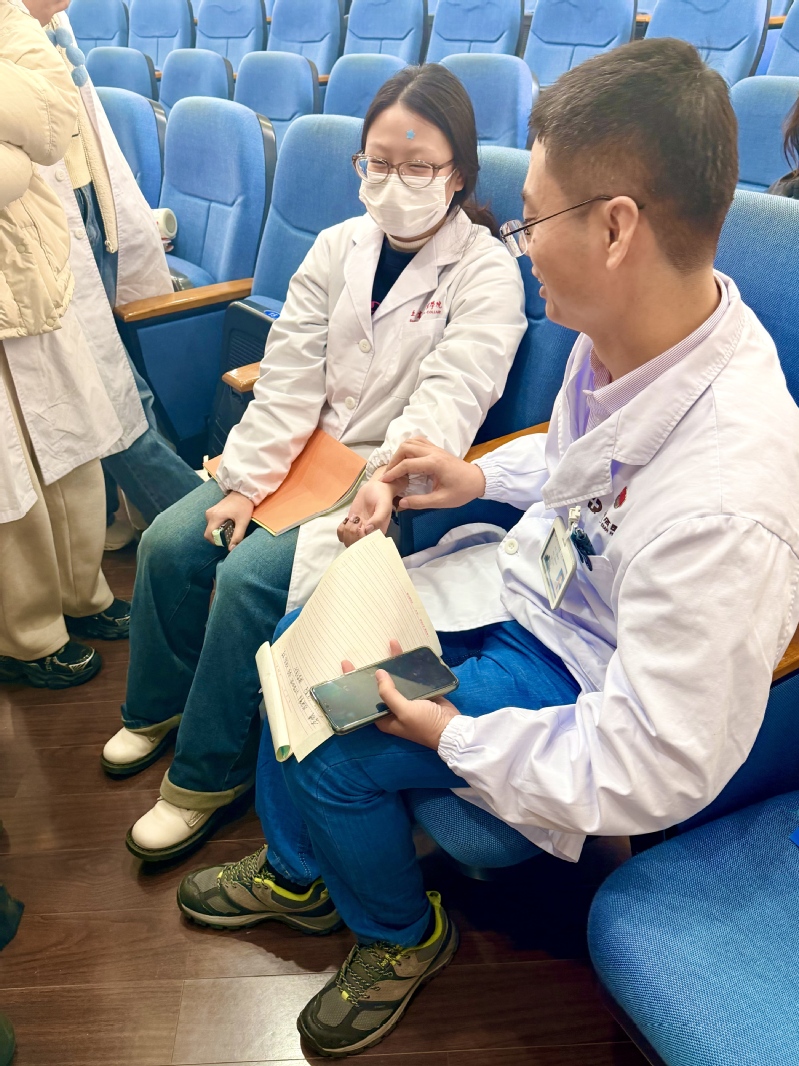 在互動(dòng)環(huán)節(jié),王主任結(jié)合冬季常見亞健康問題,為學(xué)生們普及了個(gè)性化膏方調(diào)理的注意事項(xiàng),內(nèi)容貼近生活、實(shí)用性強(qiáng)。講座結(jié)束后,王主任特意為有需求的學(xué)生提供免費(fèi)把脈咨詢服務(wù),通過“望聞問切”精準(zhǔn)診斷,并結(jié)合學(xué)生的體質(zhì)特點(diǎn)給出個(gè)性化養(yǎng)生建議與簡(jiǎn)易膏方配方,讓學(xué)生們親身感受中醫(yī)診療的獨(dú)特魅力。