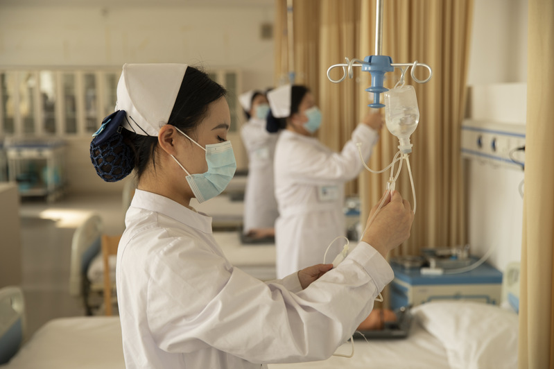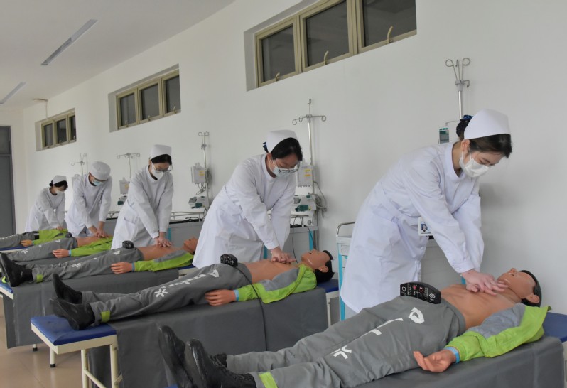 護(hù)理專業(yè)學(xué)生在實訓(xùn)室模擬操作
